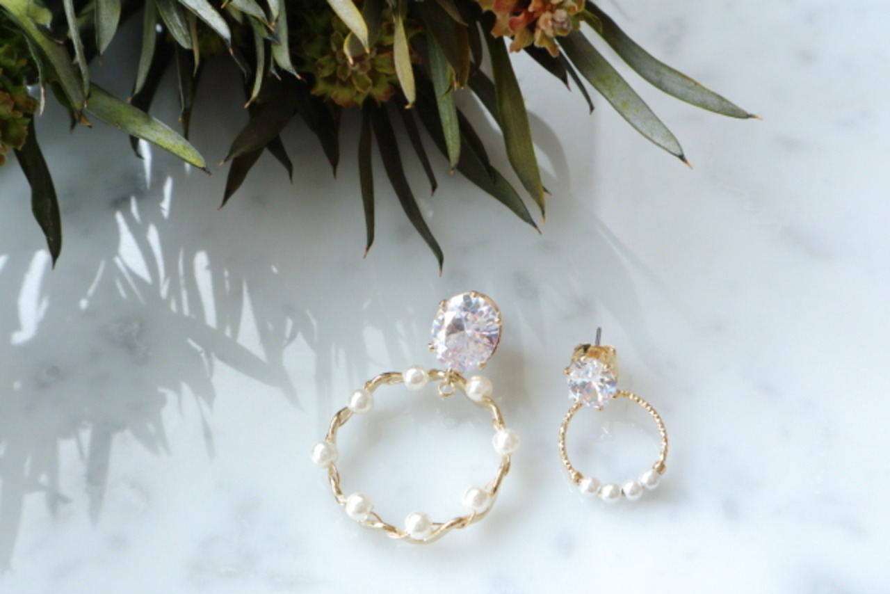 1つはウェーブ型のプレートにパールがはめ込まれた、