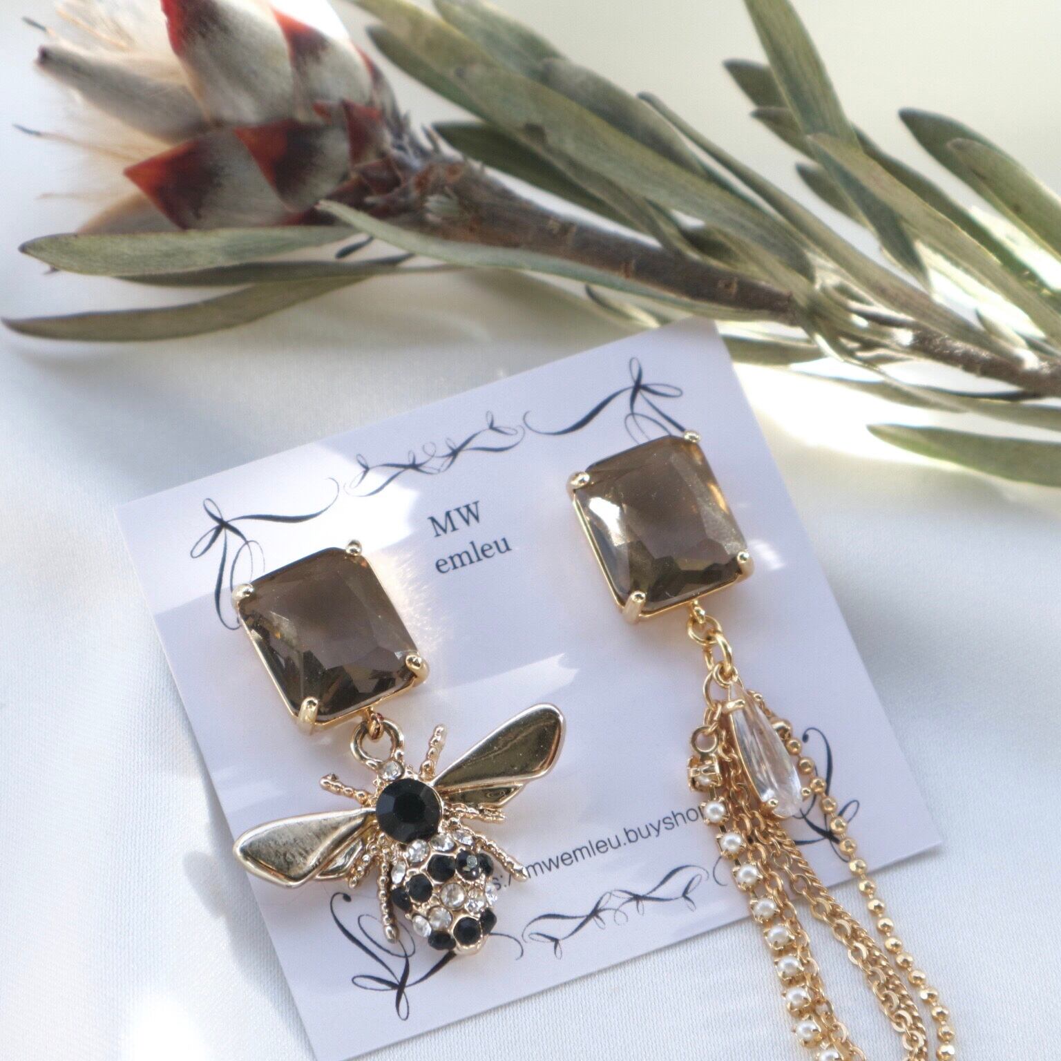 ブラックとクリアのビジューが可愛い蜂チャームと、